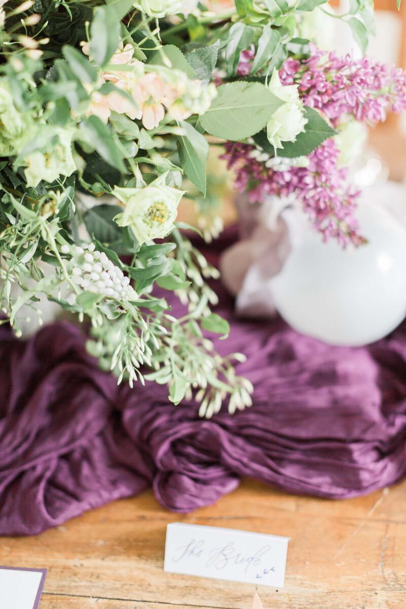Silk ribbons, calligraphy and beautiful wedding florals